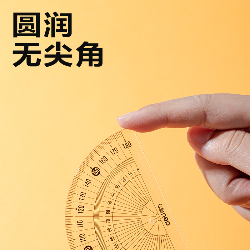 得力学生透明塑料量角器加厚刻度清晰半圆尺180度绘图角度尺360度