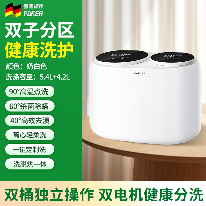 德国派克迷你双桶全自动洗衣机内衣裤杀菌高温蒸煮母婴儿童热烘干