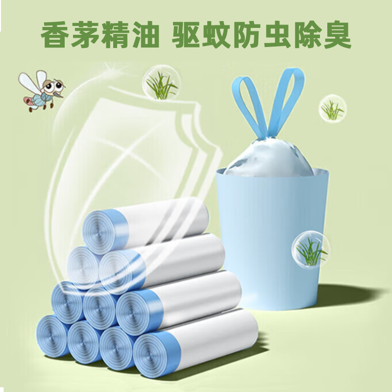 防蚊香茅驱蚊垃圾袋家用加厚手提式抽绳厨房厨余一次性防虫除臭