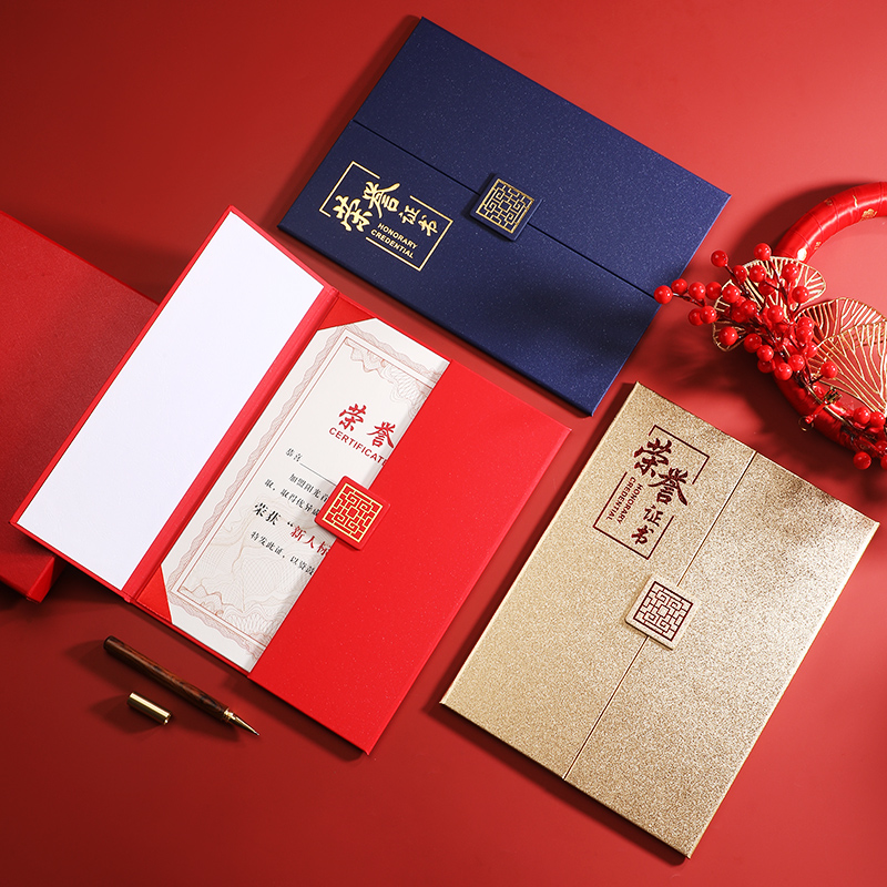 荣誉证书封套定制外壳定做封皮高档颁奖获奖优秀员工奖状a4内芯可打印制作欧式三折页毕业结业任命聘书证件书