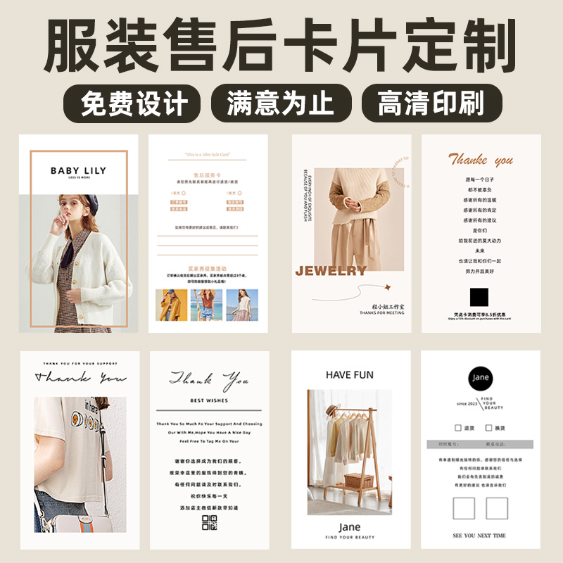 服装店售后卡订制电商感谢卡退换货登记小卡名片设计温馨提示引流地推评论贺卡印刷产品介绍五星服务卡片定制