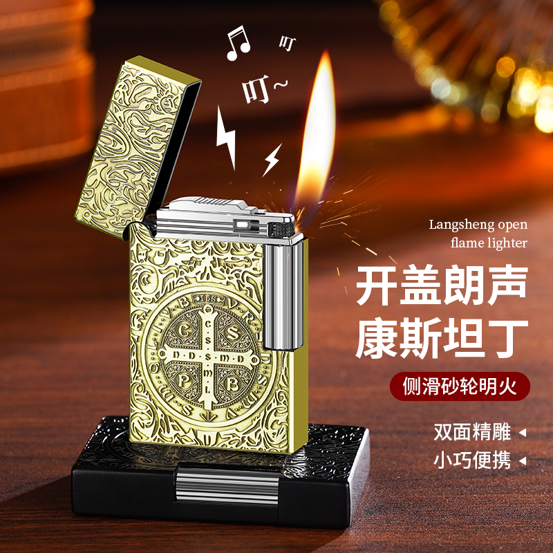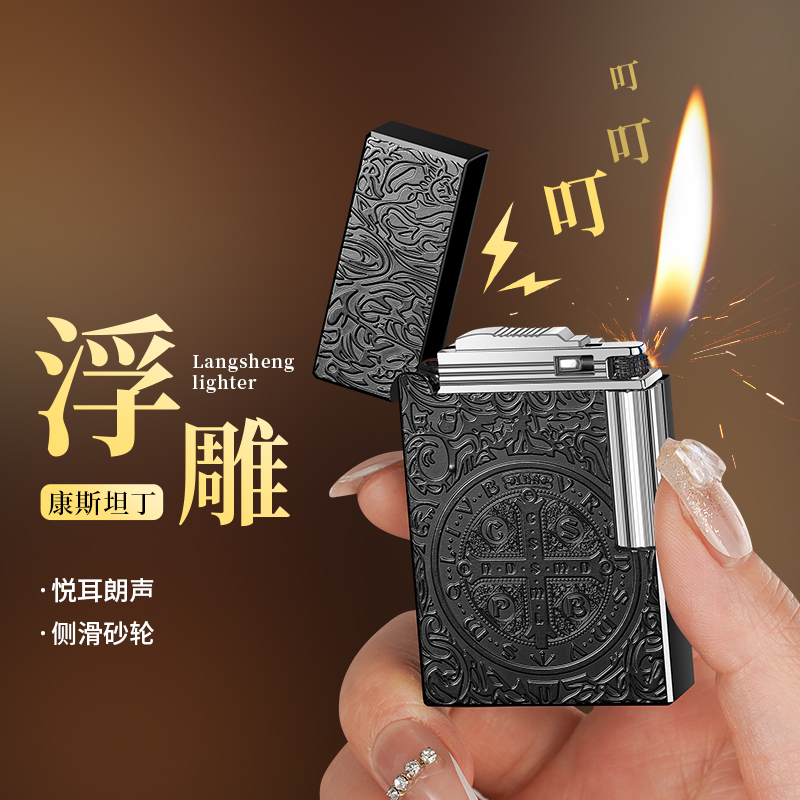 朗声新款充气打火机金属男士康斯坦丁砂轮复古点烟器高档送男友潮