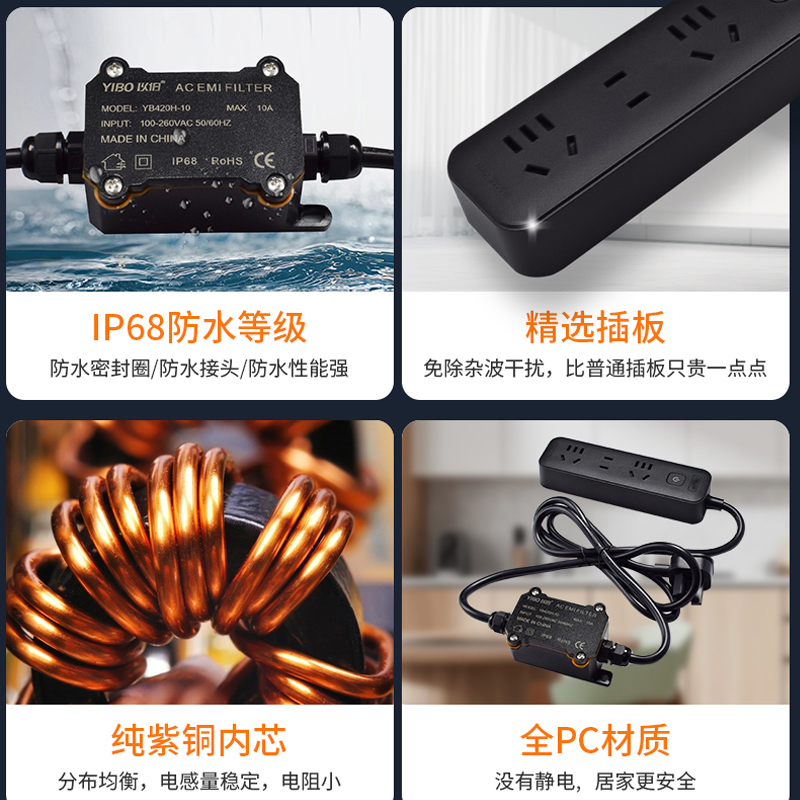 以伯外置EMI电磁干扰电源滤波器排插开关插座插排抗干扰YB420H
