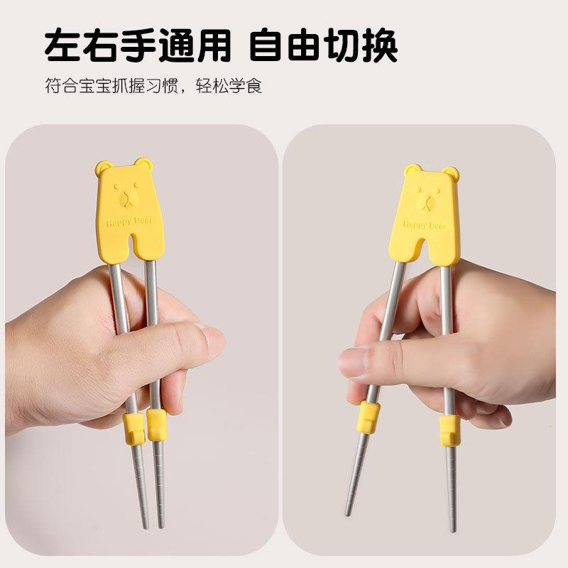 儿童筷子宝宝学木筷不锈钢防滑学习筷硅胶餐具鸡翅木练习训练辅助