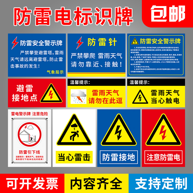 防雷安全警示牌 避雷针防雷针标识牌 雷雨天气请勿靠近提示牌 安全搞是牌 注意防雷电避雷接地点标志牌定制