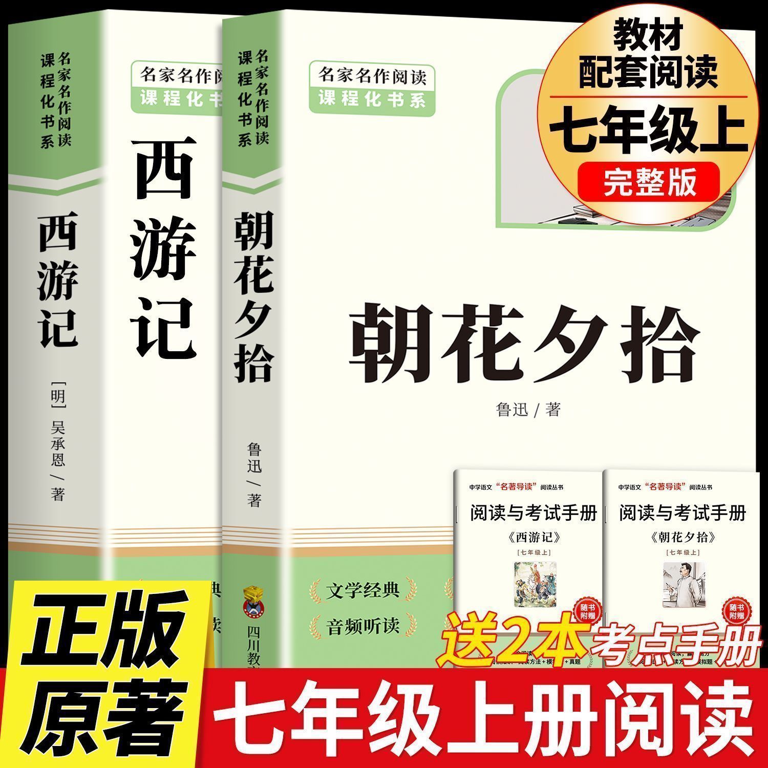 朝花夕拾鲁迅原著正版和西游记全套完整版七年级上册名著初一必读课外阅读书籍配套人教版初中7上语文完整书目人民文学教育出版社