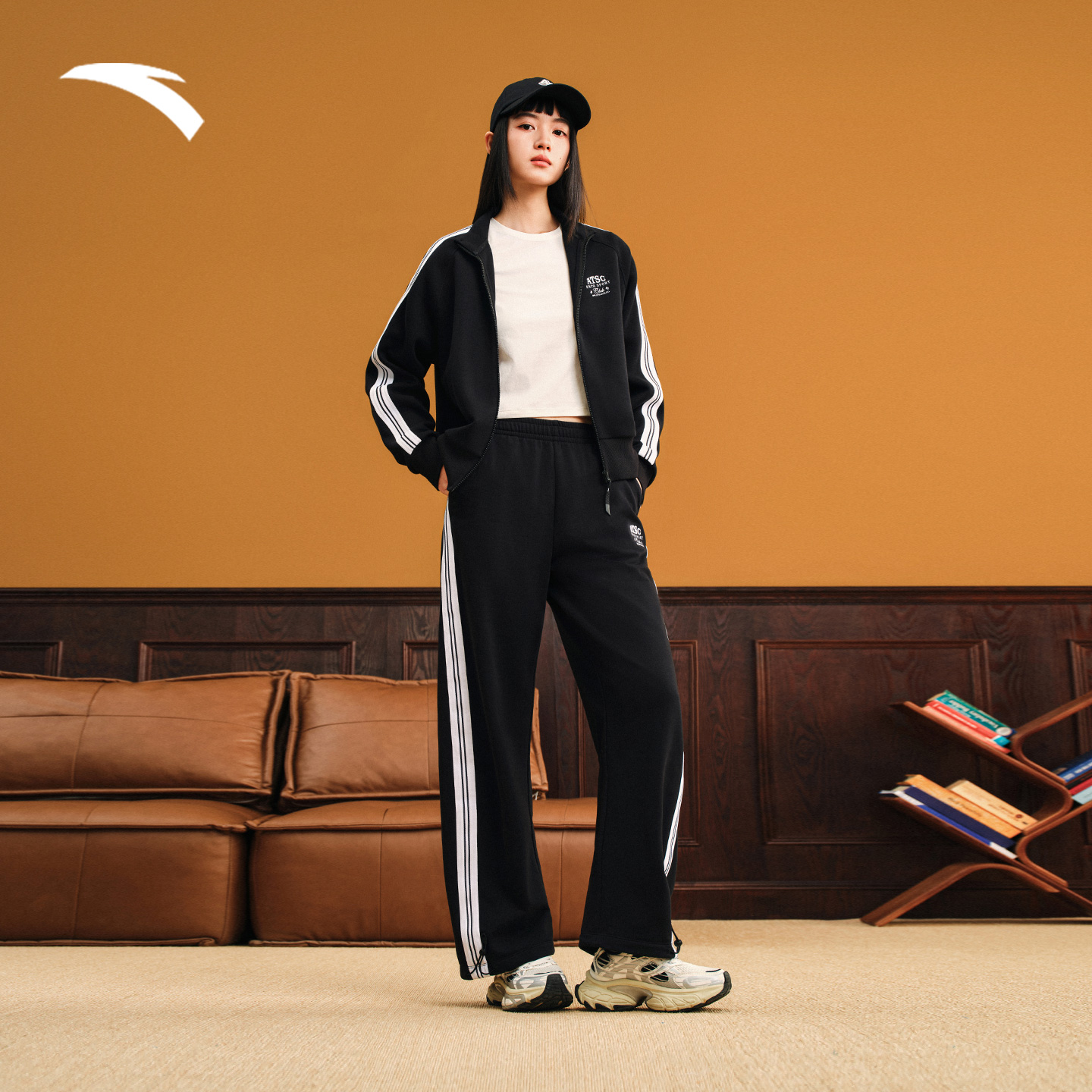 【关晓彤同款】安踏复古休闲长裤女冬季新款宽松直筒裤162538302
