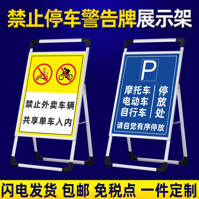 禁止停车警示牌店铺门前门口请勿泊车告示牌此处通道有车出入严禁停车标识提示牌停车场车位已满指示牌展示架