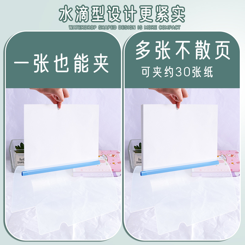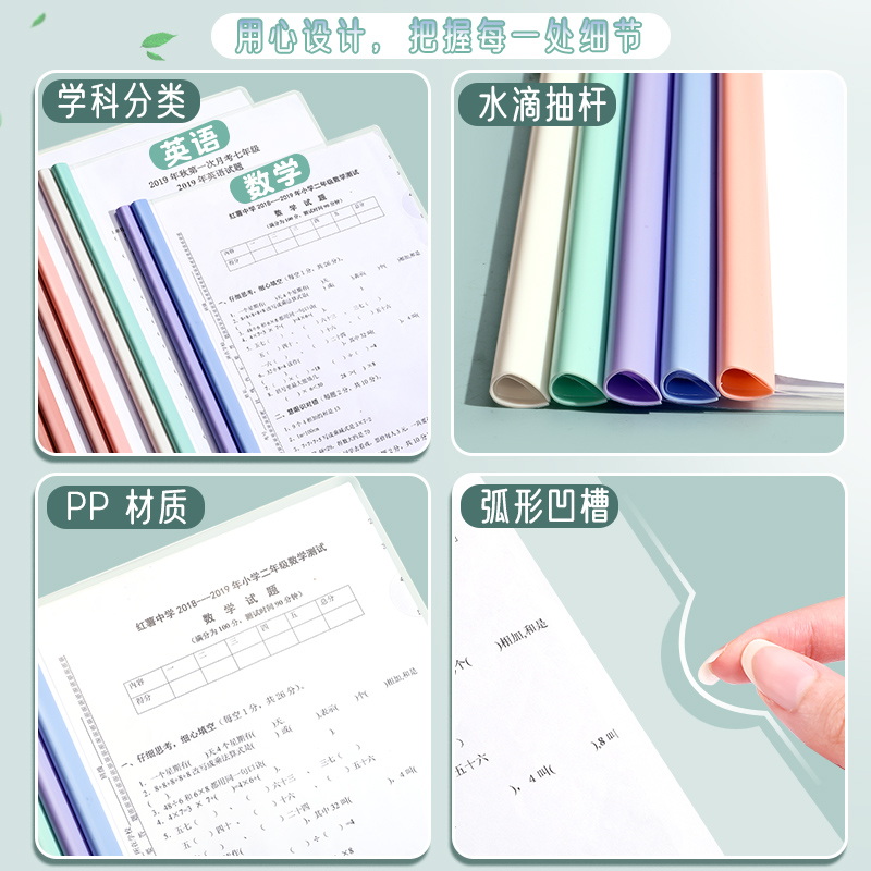 a4抽杆夹文件夹透明插页收纳试卷袋科目分类试卷整理档案夹办公用品加厚大容量初中高中生资料夹学科开学水滴