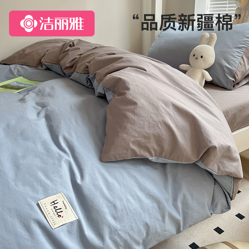 洁丽雅水洗棉四件套全棉100纯棉床单被套学生宿舍三件套床上用品
