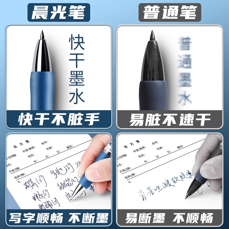 晨光中性笔按动式gp1008学生考试用笔0.5圆珠笔黑色水笔批发速干碳素笔医用处方墨蓝按动笔教师批改专用红笔