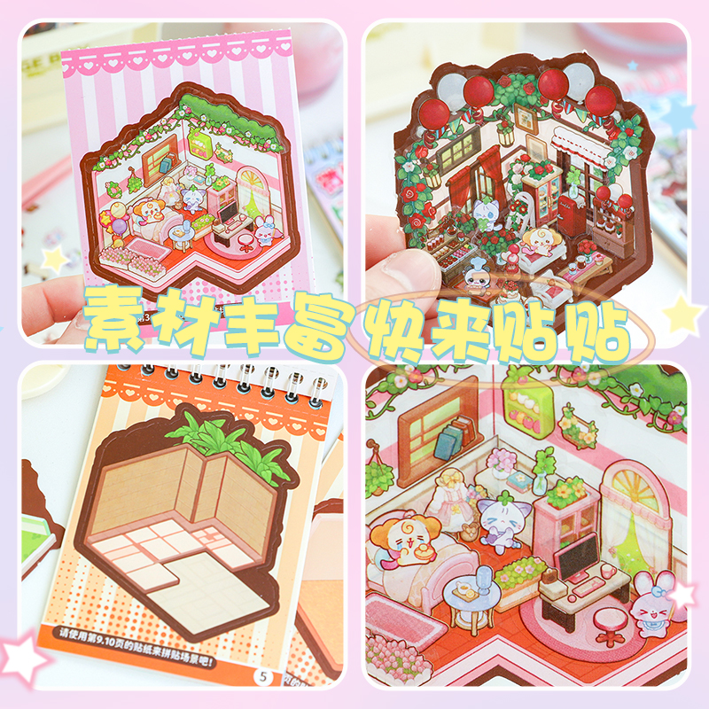 送镊子)造景贴纸微缩场景合集本贴纸本立体换装贴纸女孩儿童diy防水贴画亲子小游戏解压小屋玩具装饰小图案
