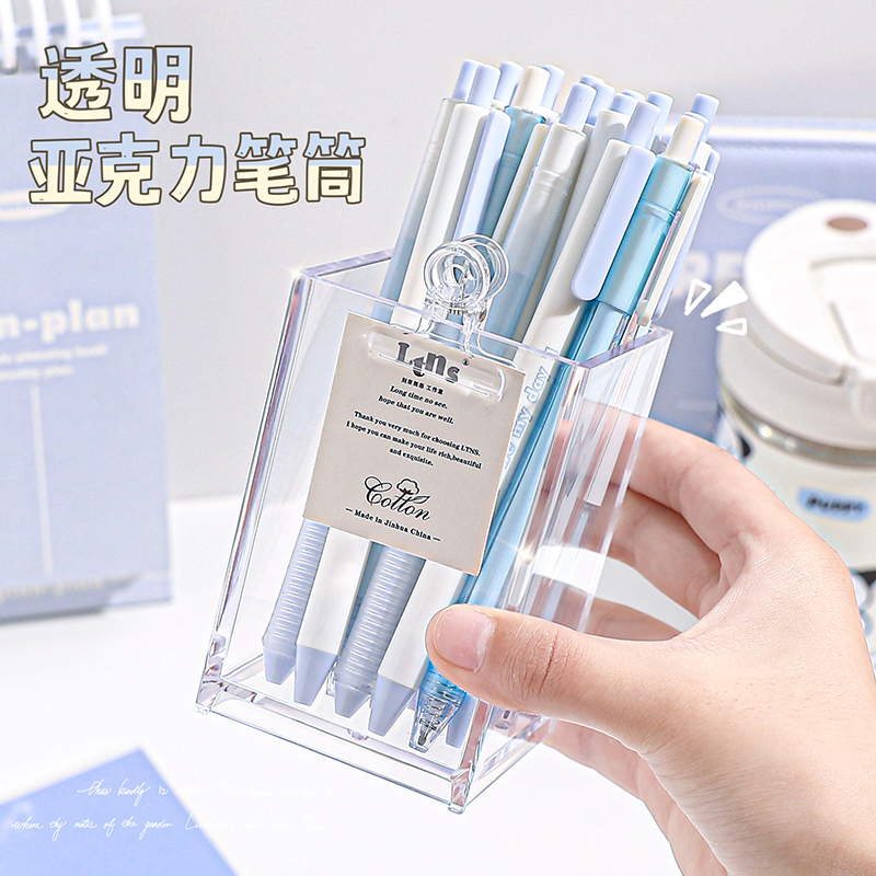 高颜值亚克力透明笔筒大容量儿童女孩小学生书桌文具收纳盒置物架简约ins桌面多功能笔桶轻奢高级感笔架办公