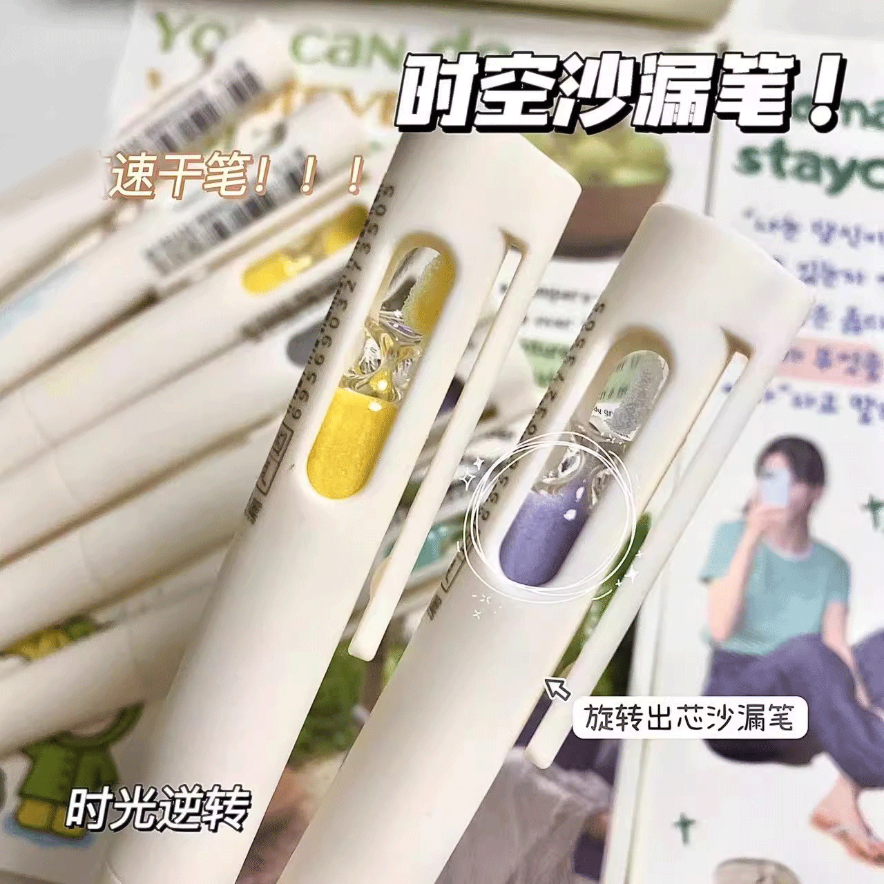时空沙漏笔趣味转转笔中性笔圆珠笔黑笔高颜值刷题笔速干顺滑碳素笔好看的上课可玩的笔巡航时空舱考试专用笔