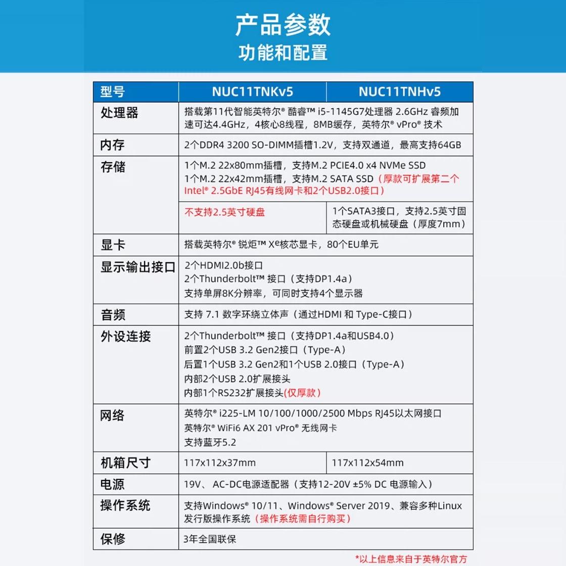 Inte lnuc主机猛虎峡谷NUC11TNKV5迷你电脑11代i5老虎峡谷Vpro