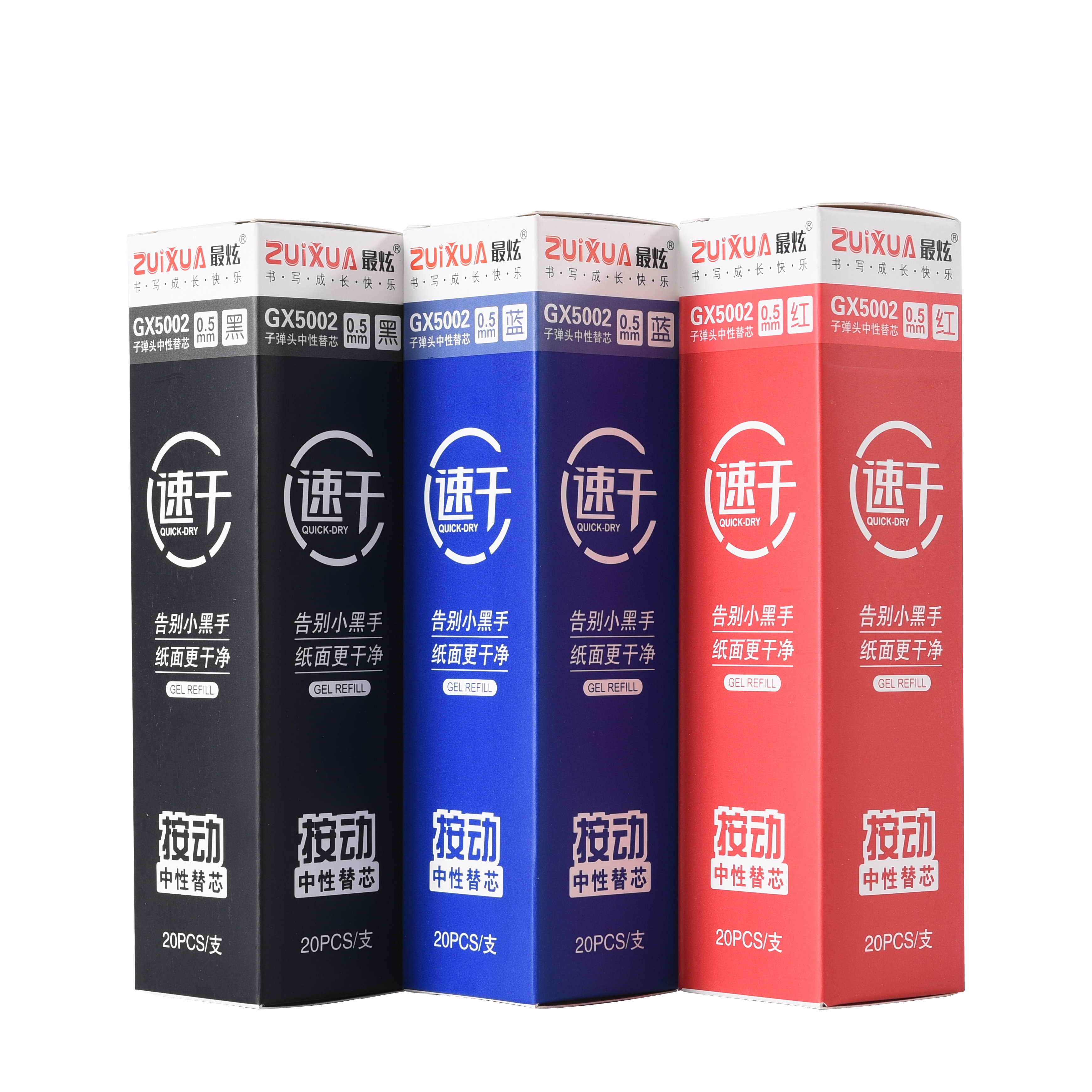 最炫GX5002按动弹簧笔芯 按压式0.5子弹头大容量中性水笔替芯蓝红