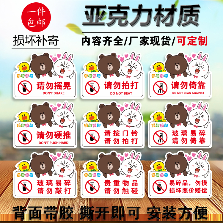茶叶食物残渣等请勿倒入 禁止抛物攀爬 亚克力温馨提示牌墙贴定制