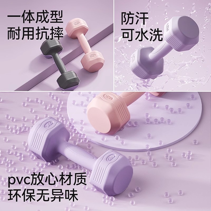 哑铃健身女士家用塑形器材壶铃杠铃儿童包胶小哑铃2KG一对实心