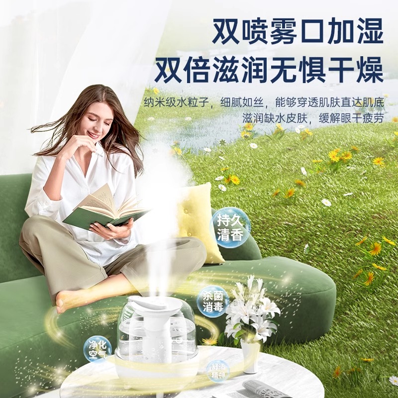 【2025新款】5L加湿器双喷家用轻音便携办公室桌面迷你空气净化器学生宿舍补水孕妇婴儿卧室空调房保湿大雾