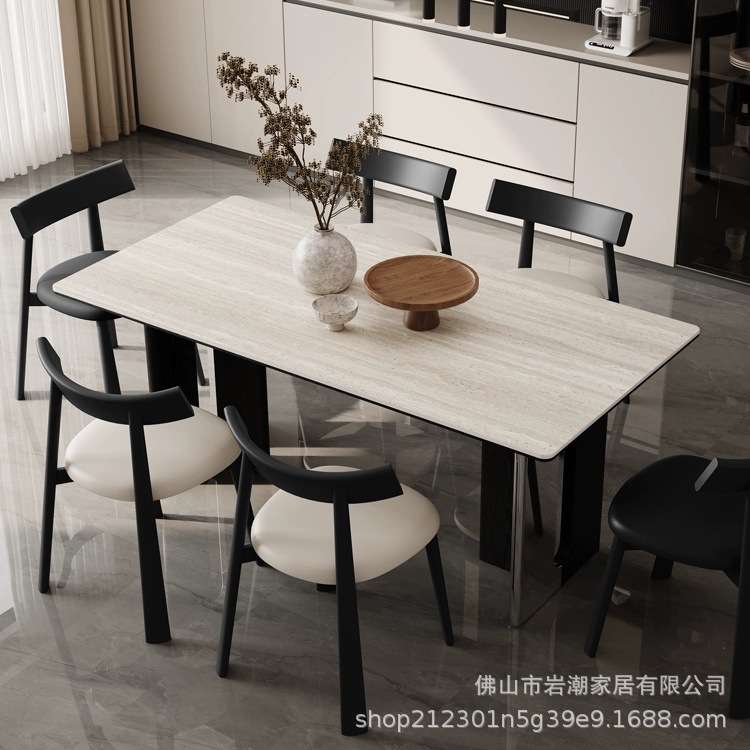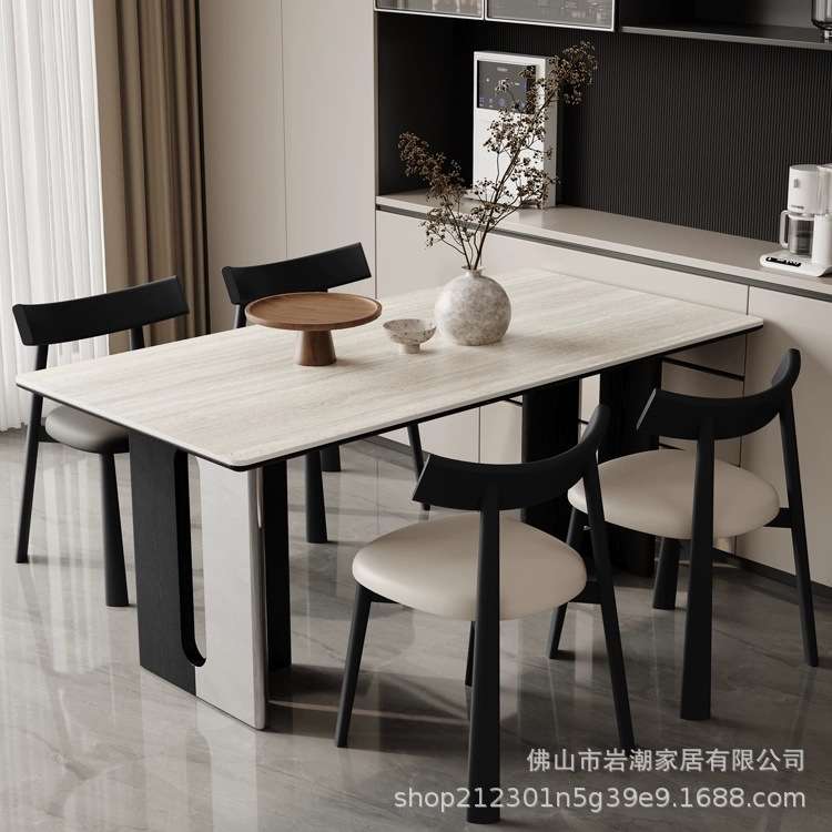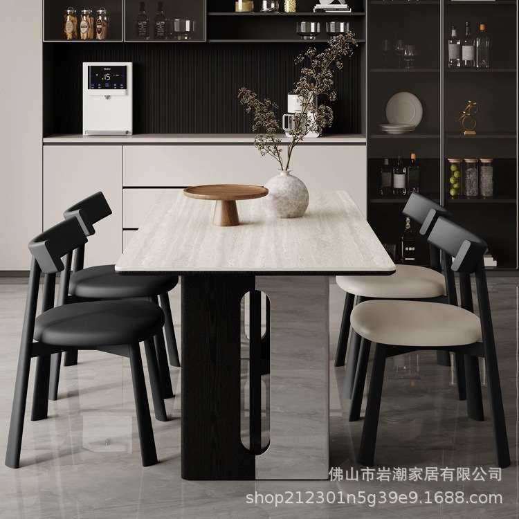 依诺洞石岩板餐桌椅组合现代简约中古风餐桌意式极简家用小户型桌