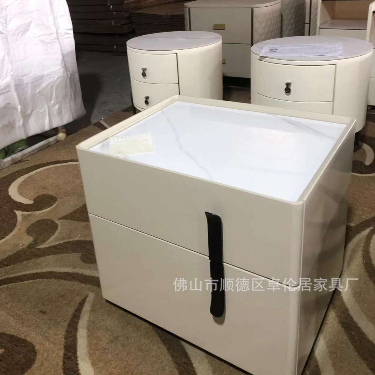 意式极简实木床头柜岩板现代简约烤漆床边柜简易卧室边柜收纳窄柜