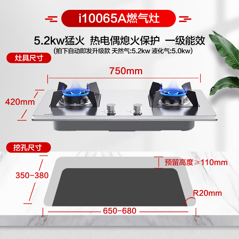 [以旧换新]华帝燃气灶i10065A不锈钢煤气灶双灶家用天然气液化气