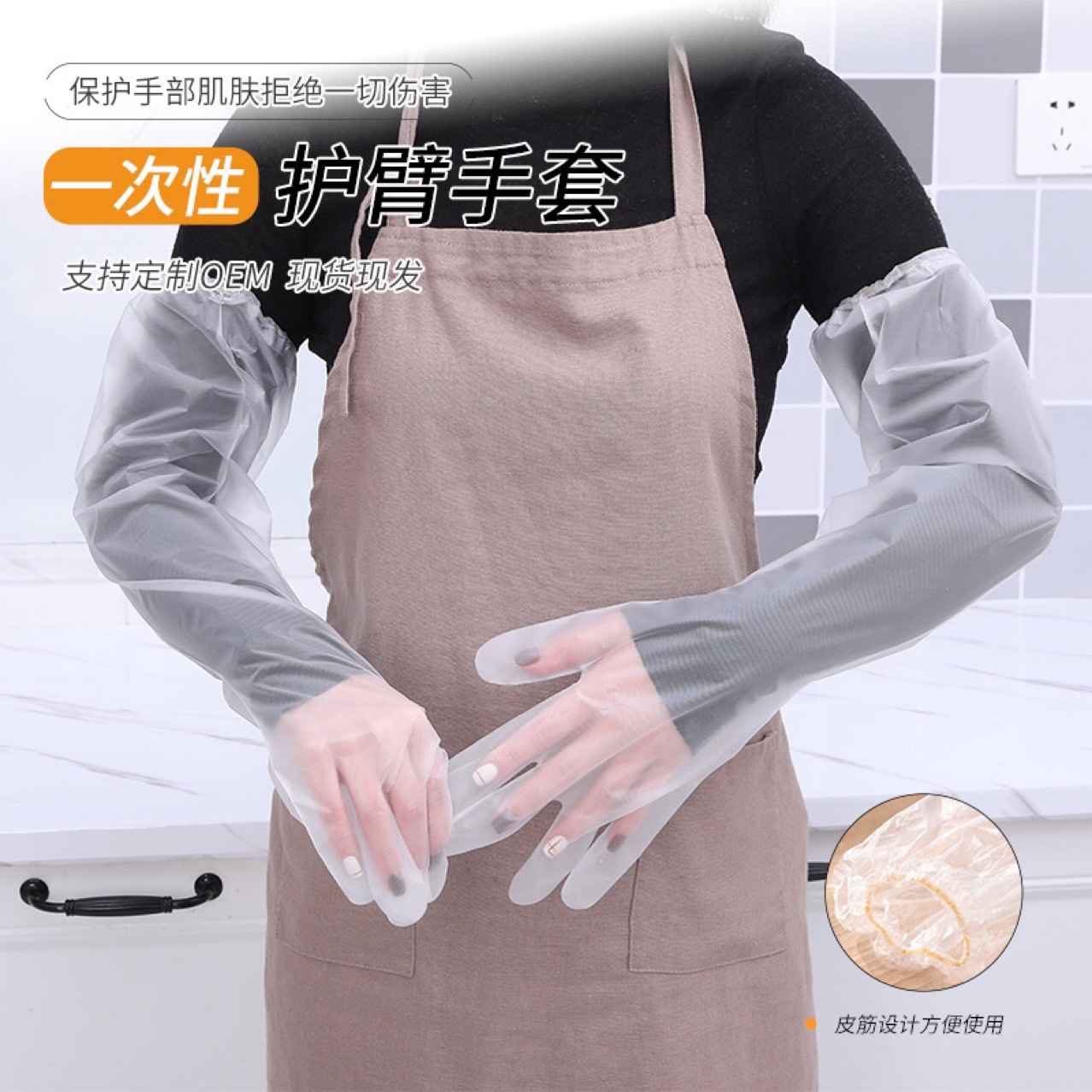 一次性护臂手套厨房家务洗碗清洁防水松紧束口加长CPE长臂手套