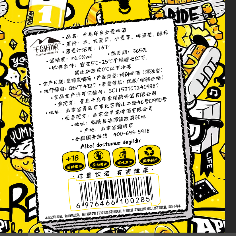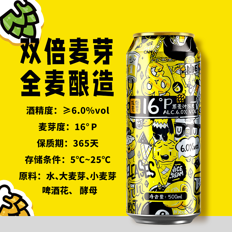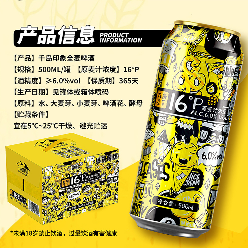 千岛印象16度全麦啤酒500ml*6罐/12罐装高麦汁浓度浑浊型浓郁口感