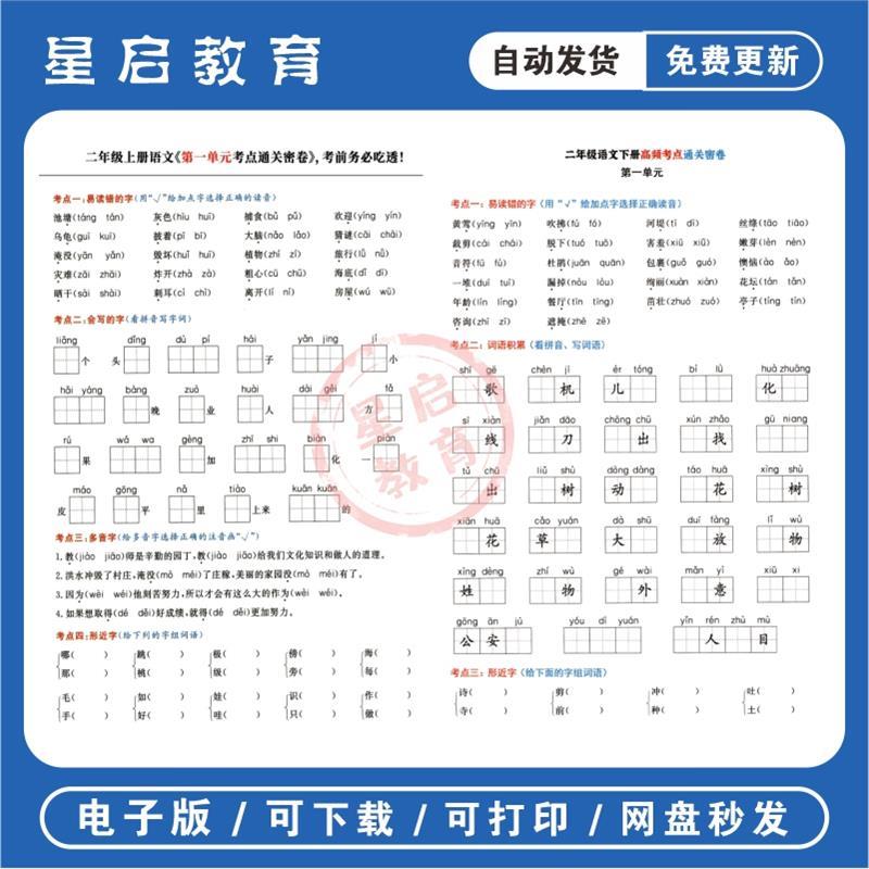 小学语文一二三四五六年级上册下册1-8单元高频考点基础知识通关默写练习易错字多音字形近字重点句子词语积