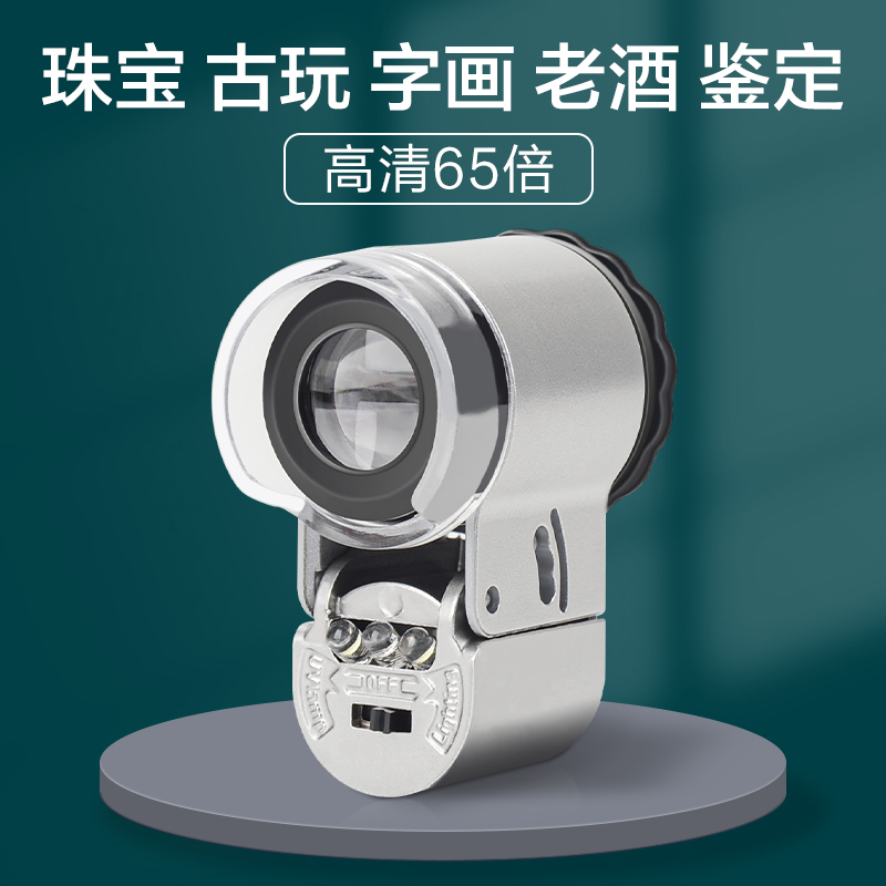 放大镜60倍高清带灯100手持便携式显微镜鸽眼文玩珠宝钻石玉石鉴定古董邮票古玩印刷网点白酒鉴定手机专用100
