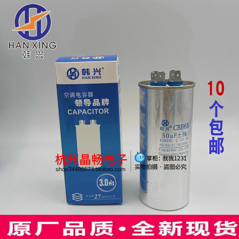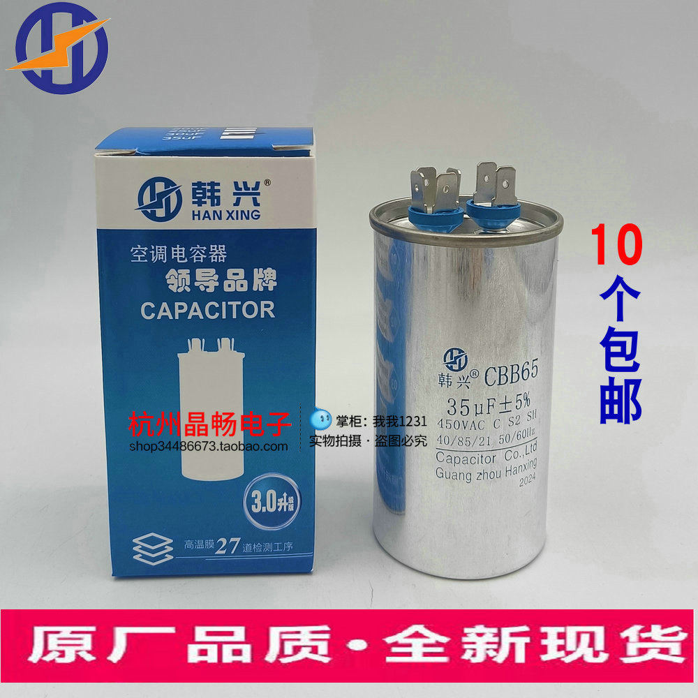 韩兴HAN空调压缩机启动电容CBB65铝壳防爆电容25UF35UF50UF60UF