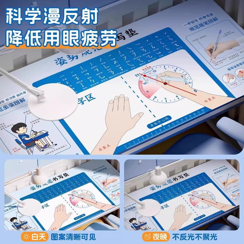 学生学习规范书写正姿垫书桌写字垫防滑儿童坐姿握笔图提示桌垫子
