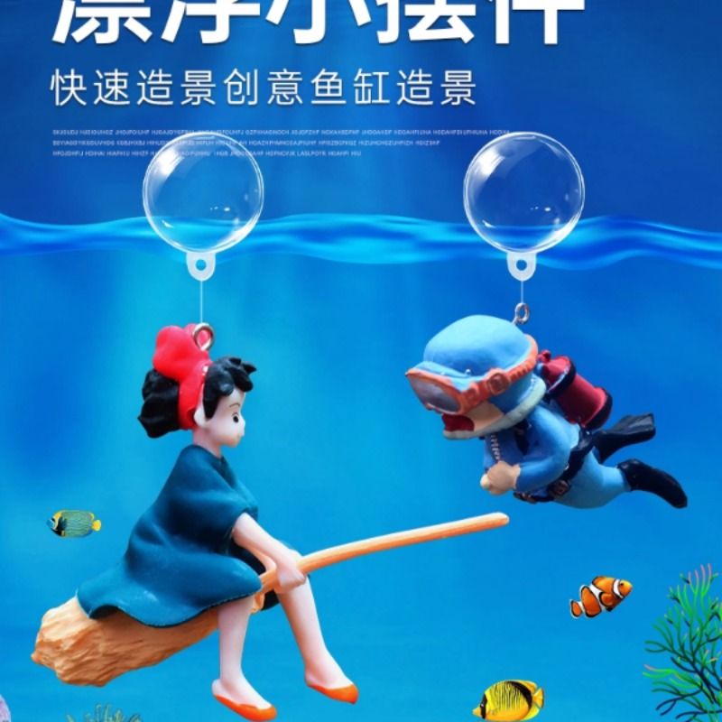 鱼缸造景悬浮蓝胖子摆件水族箱海底世界创意装饰套餐潜水员漂浮球
