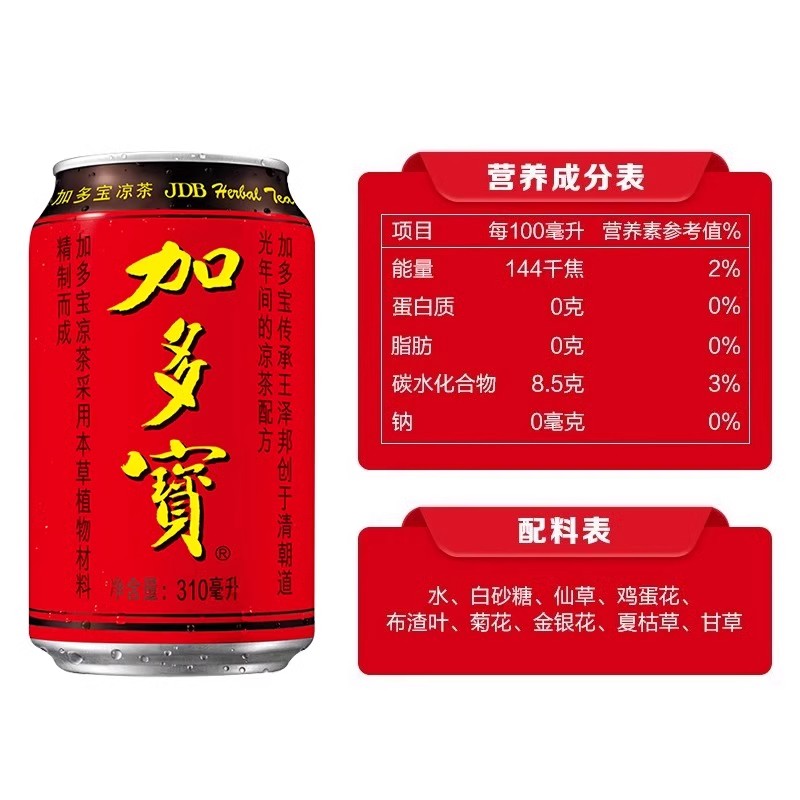 加多宝凉茶310ml*24罐整箱装夏日必备植物饮料清爽解腻不怕上火