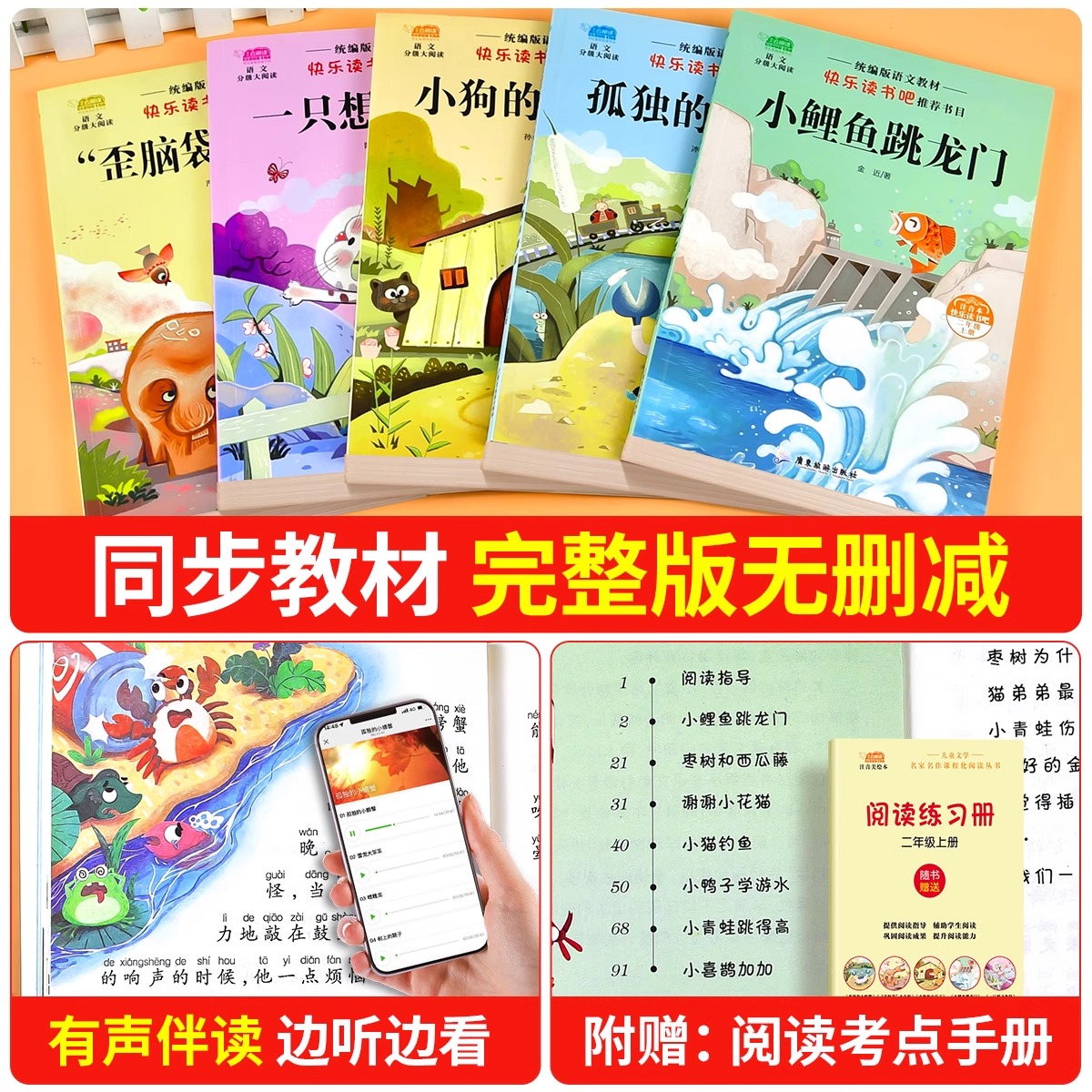 全套5册小鲤鱼跳龙门二年级上册必读正版的课外书注音版快乐读书吧二上2阅读书籍小螃蟹小狗小房子歪脑袋木头桩一只想飞的猫E成语