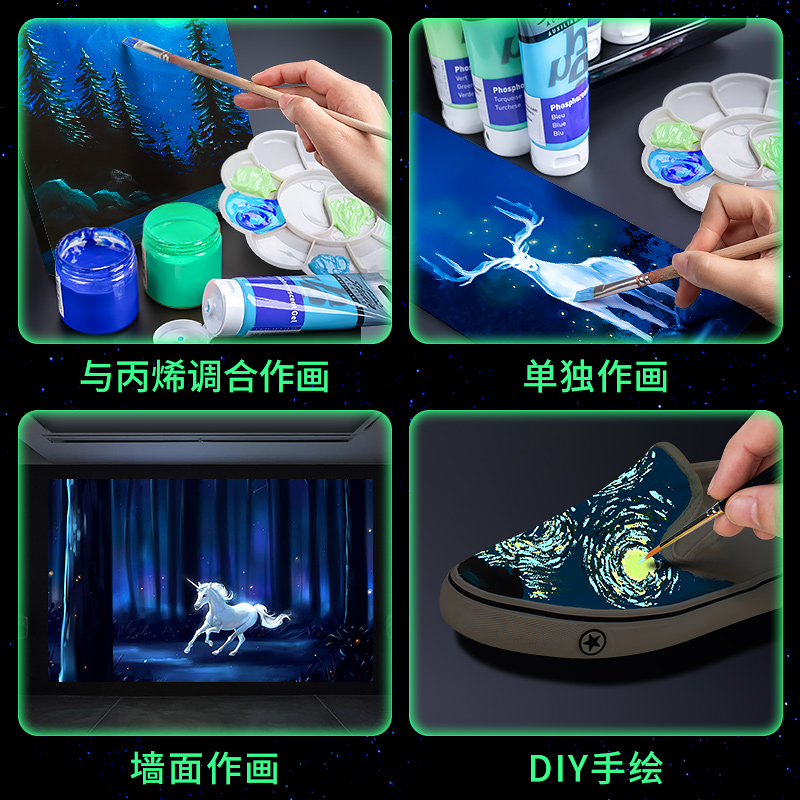 法国贝碧欧夜光调和液丙烯颜料媒介荧光调色胶diy手绘画鞋纺织亮光增光剂不掉色防水染布丙烯画专用染料画画