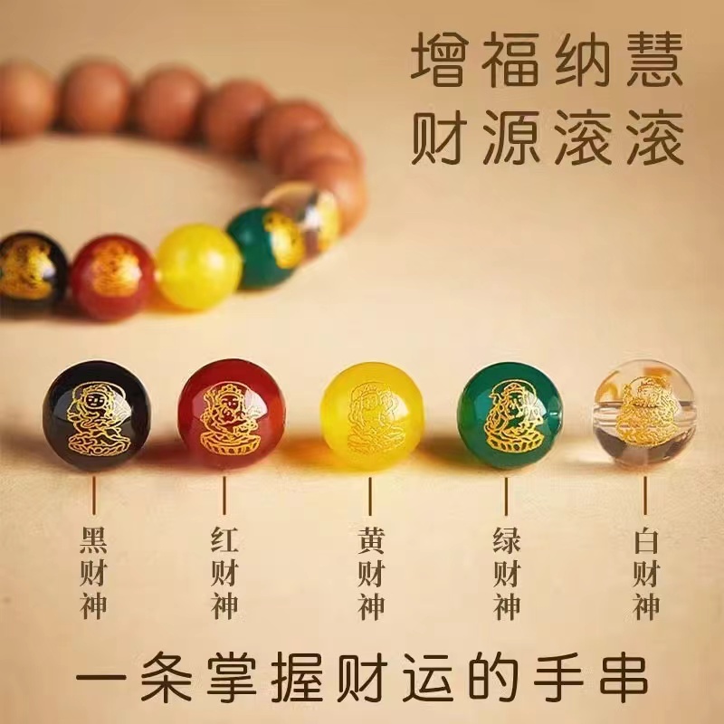 天然老桃木手串五路财神本命年高含量朱砂手链男女款紫金砂