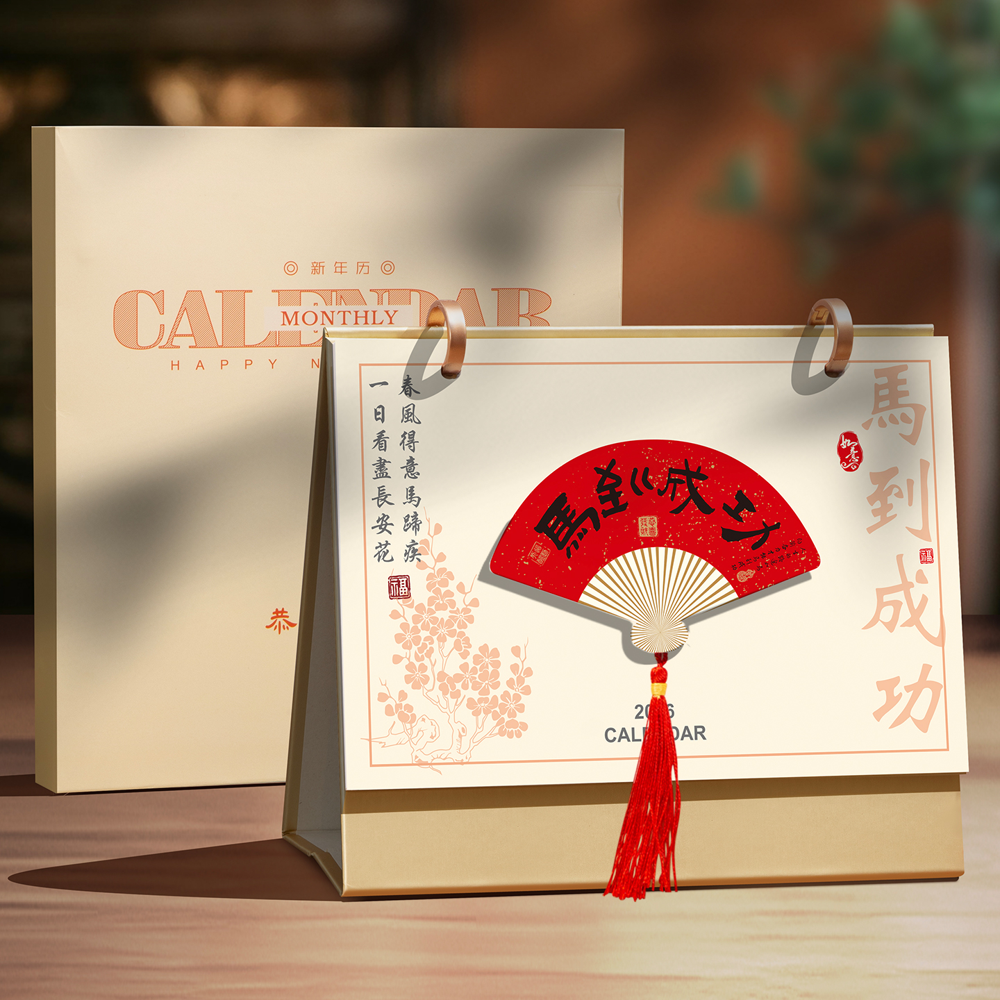 中国风双圈浮雕纸架台历2026年新款定制logo公司广告企业商务创意摆件计划本办公室桌面马年横款日历工作批发