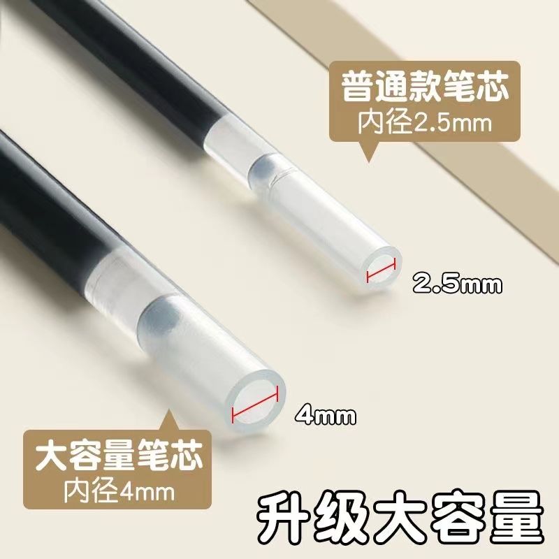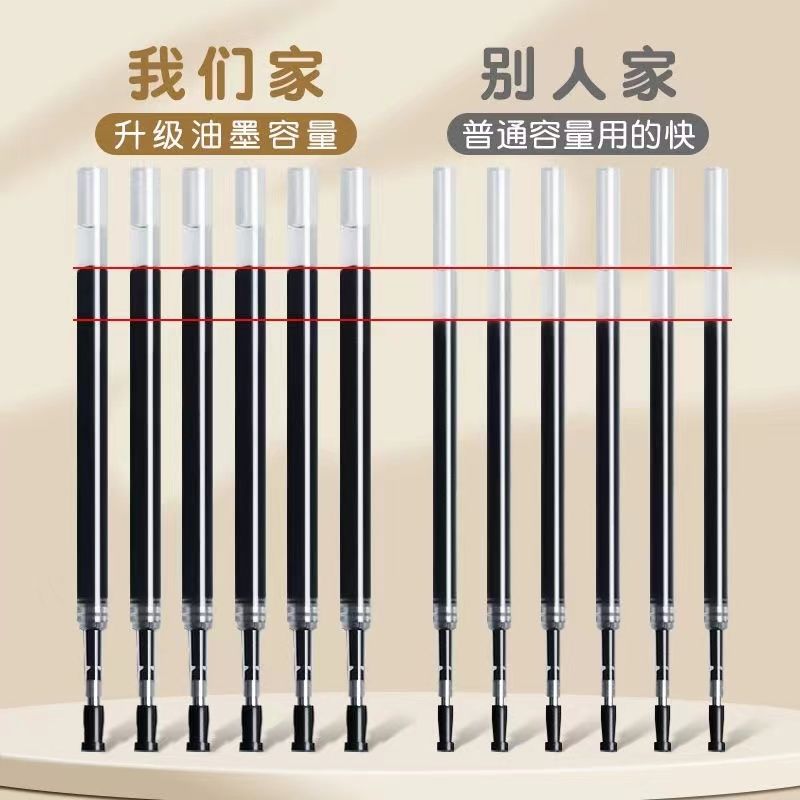 得力S206按动笔芯按动式中性笔替芯0.5mm子弹头通用黑色碳素笔芯老师专用红笔芯大容量弹簧头按压蓝色水笔芯