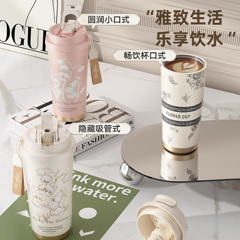 保温杯316不锈钢双饮咖啡杯大容量女高颜值随行吸管水杯情侣杯子