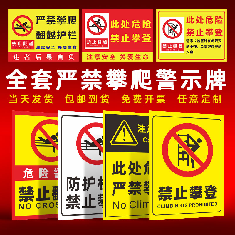 禁止攀爬标识牌严禁攀爬此处危险攀登翻越护栏高压危险警示牌轨道区域跨越提示牌户外反光铝板提示指示牌定制