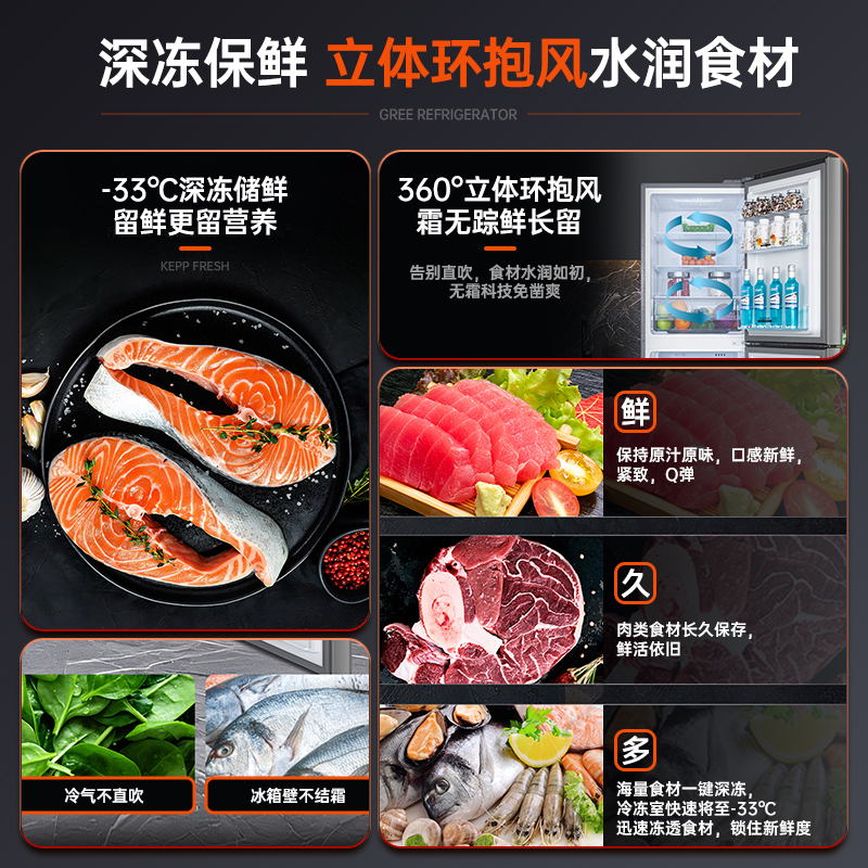 【双11特惠】格力227L三门风冷无霜变频冰箱家用租房首选节能省电