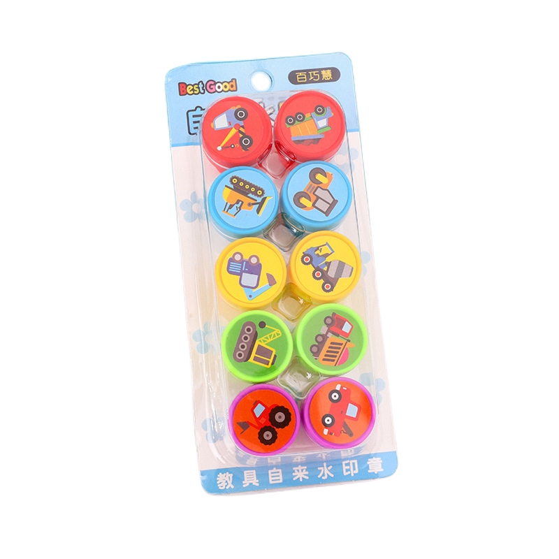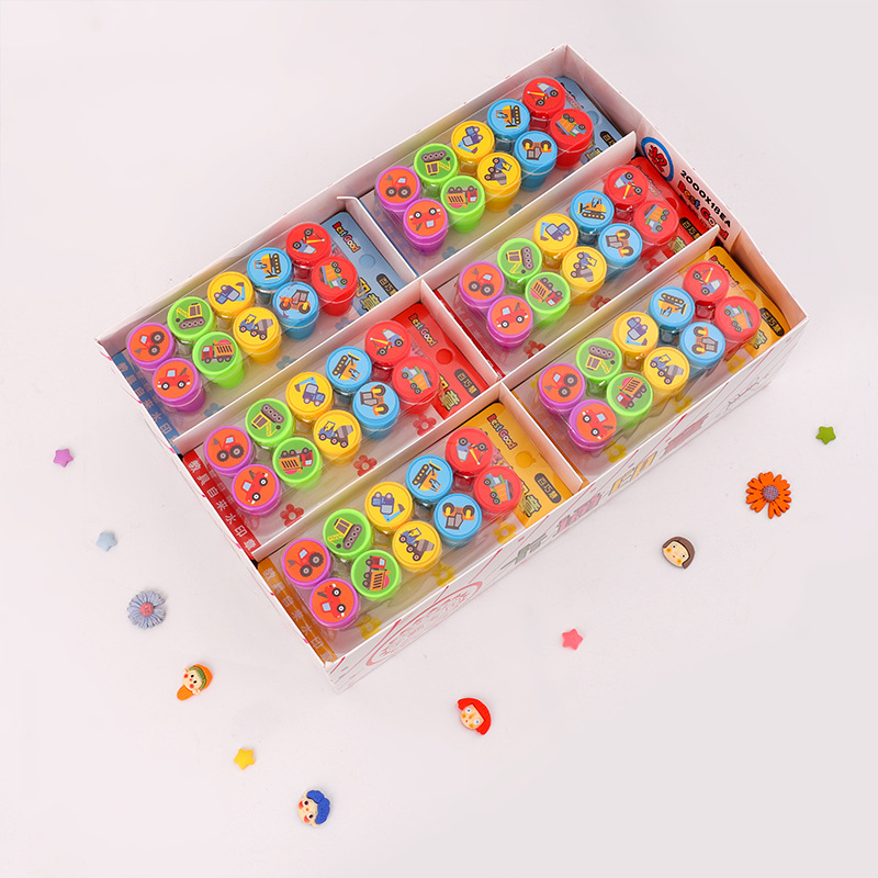 儿童印章套装可爱卡通工程车幼儿园奖励推土车盖章交通工具按章子