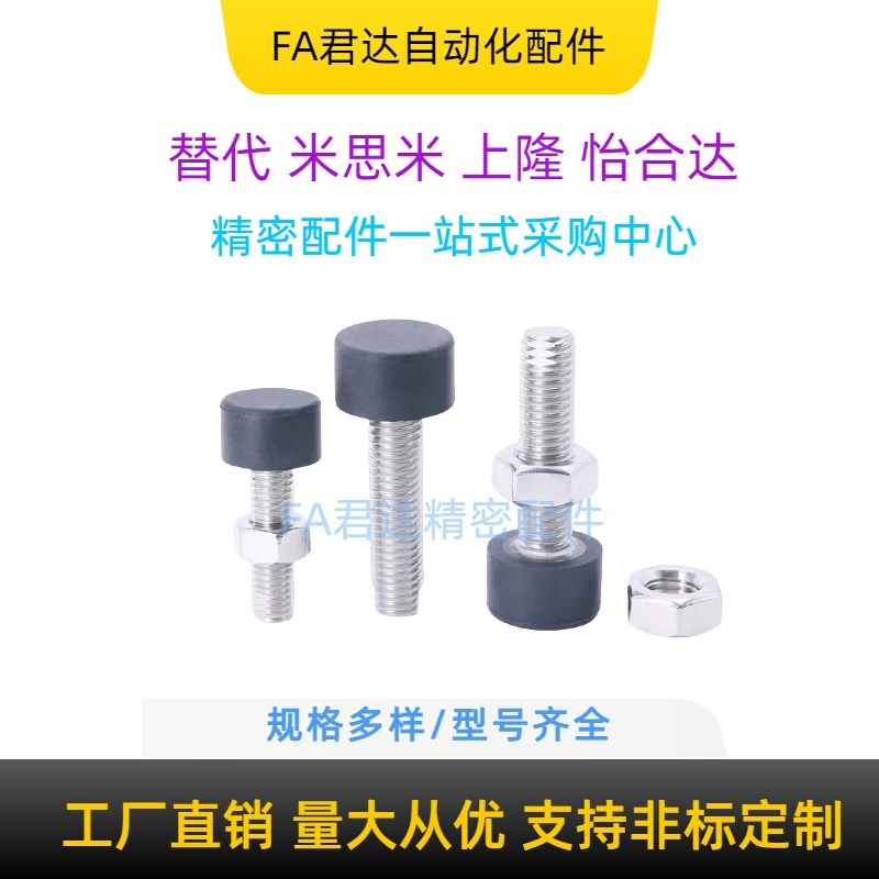 止动螺栓带聚氨酯防m撞缓冲螺丝不锈钢带低弹性橡胶减震挡块UNST