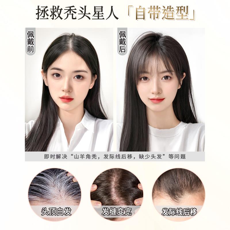 刘海假发女片头顶遮白发增发量蓬松高颅顶自然轻薄无痕真发补发片