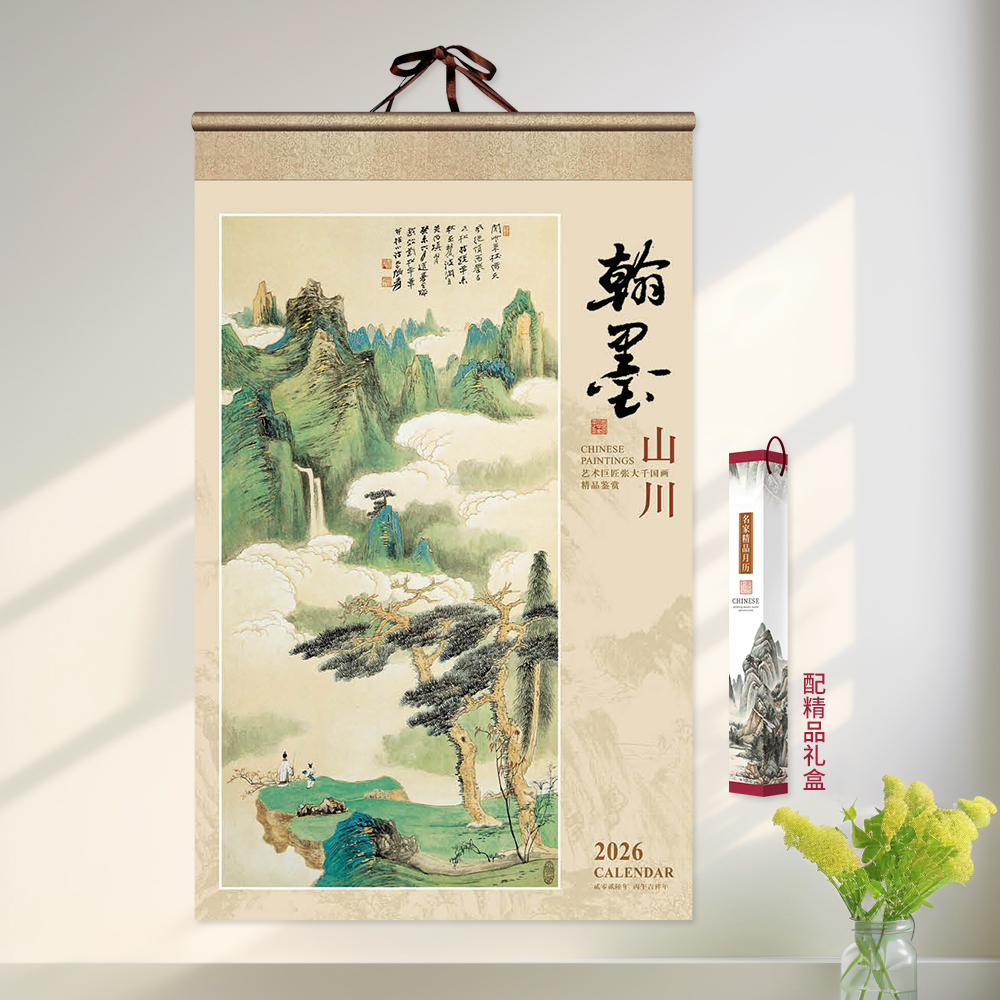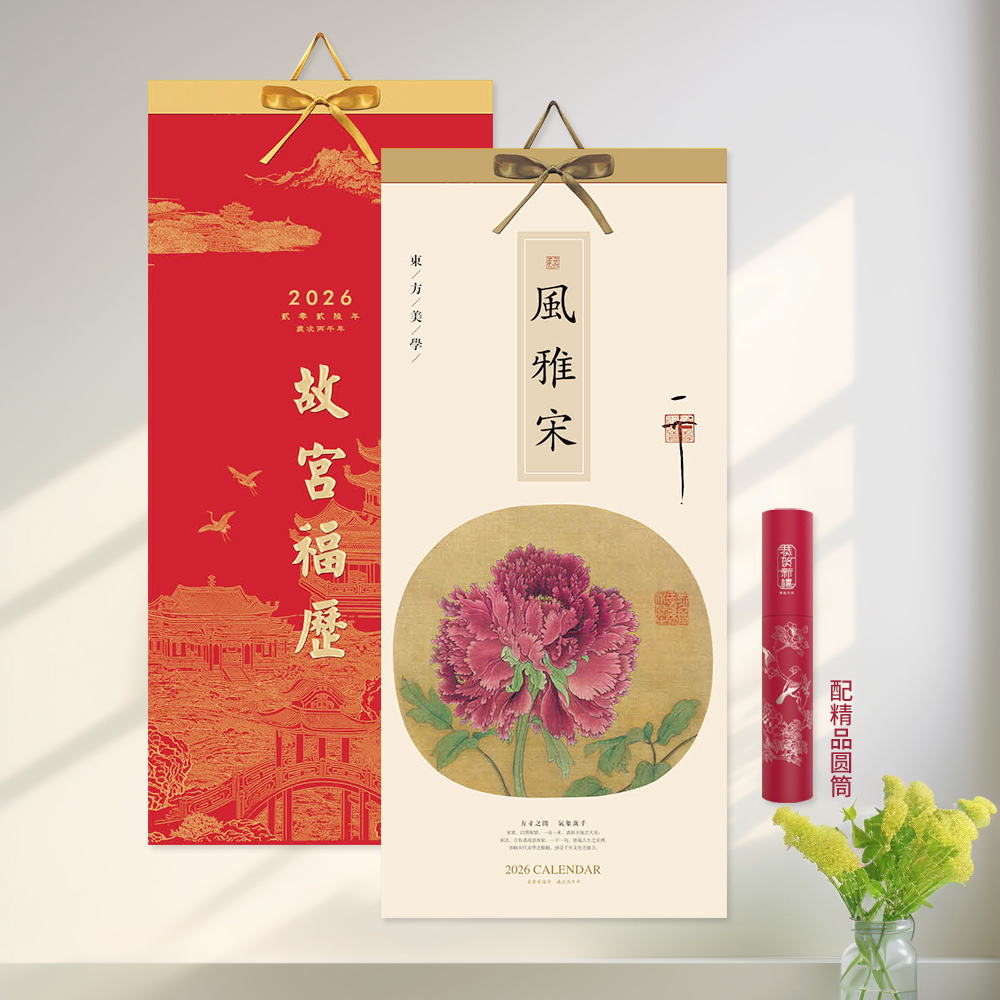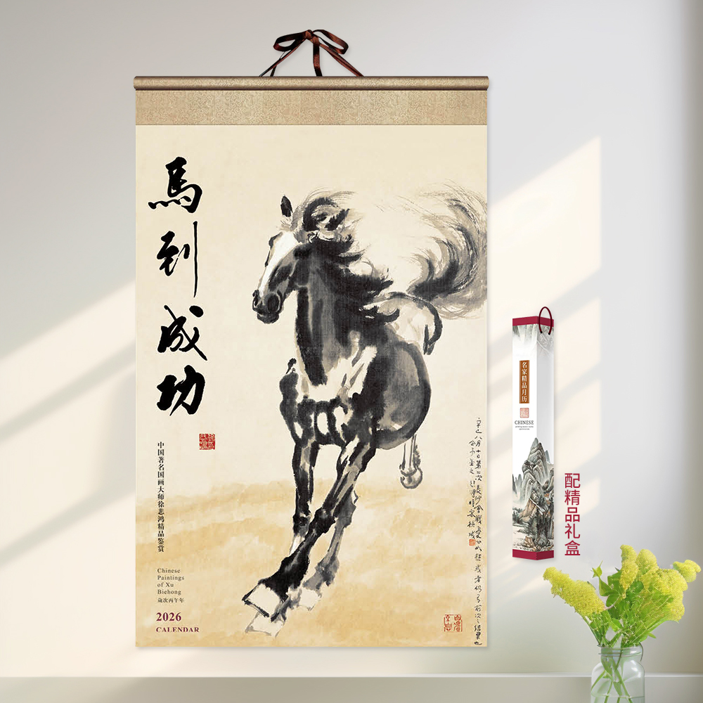 2026马年轴式宣纸大号挂历家用挂墙创意中国风传统月历印企业广告专版广告定制LOGO