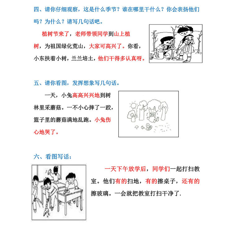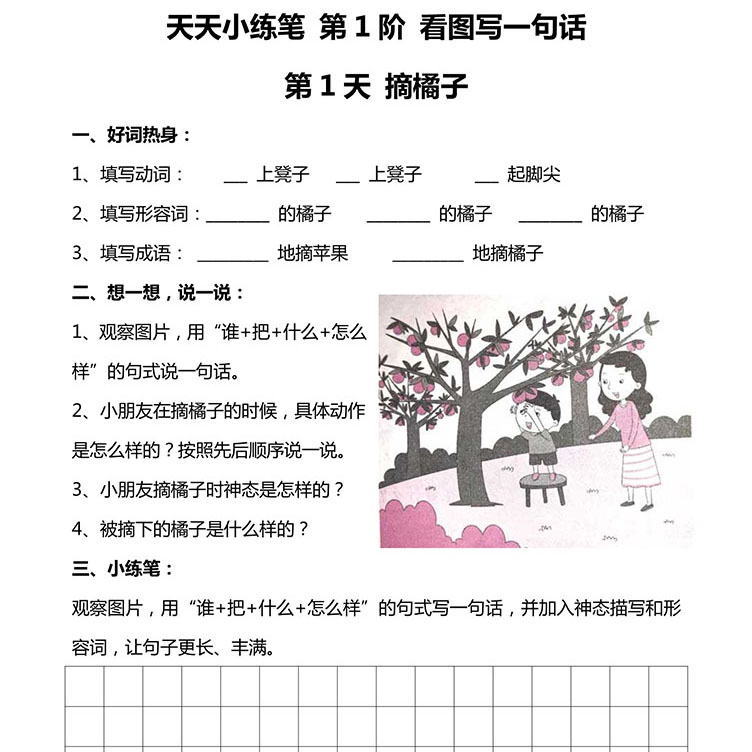 小学一二年级看图写话训练文件可打印小练笔说话范作文练习电子版