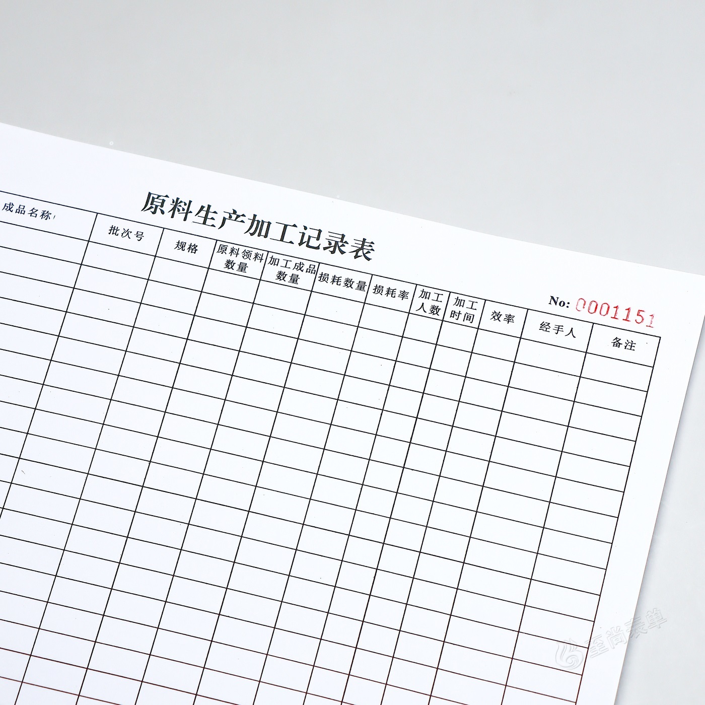 A4工厂车间原料生产加工记录表定制表单原材料用量投料数据登记本