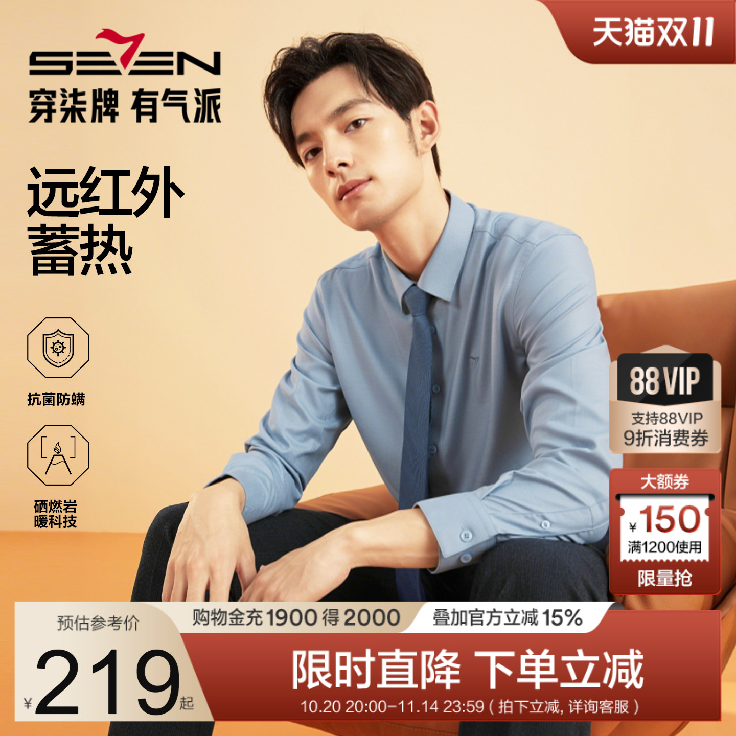 【远红外蓄热】柒牌长袖衬衫男父亲秋冬含莫代尔商务休闲保暖衬衣