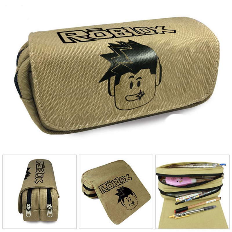 Roblox笔袋学生文具袋双层大容量翻盖帆布带拉链收纳袋铅笔盒